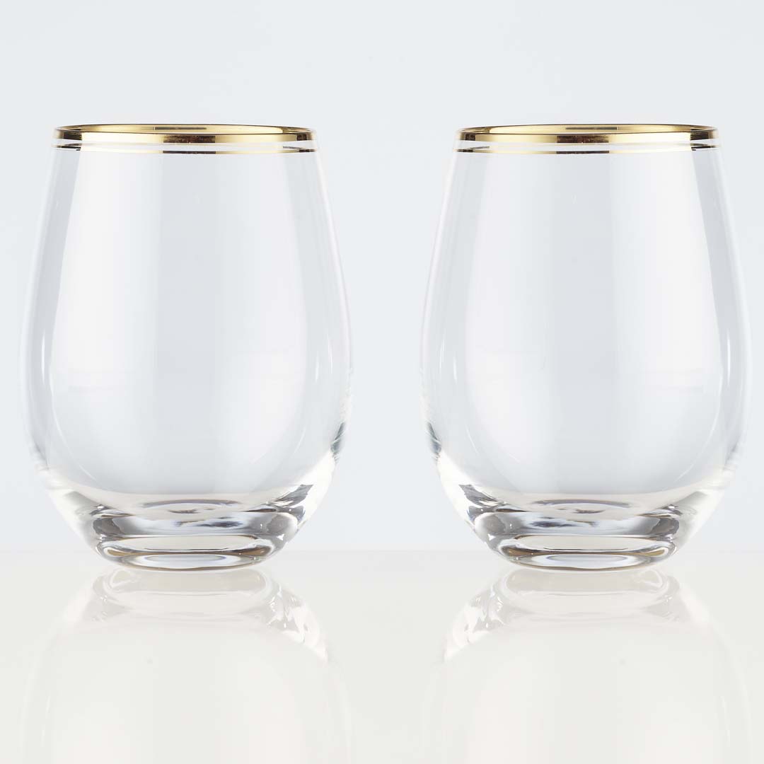 18oz Stemless Wine Glasses With Hand Painted Gold Rim