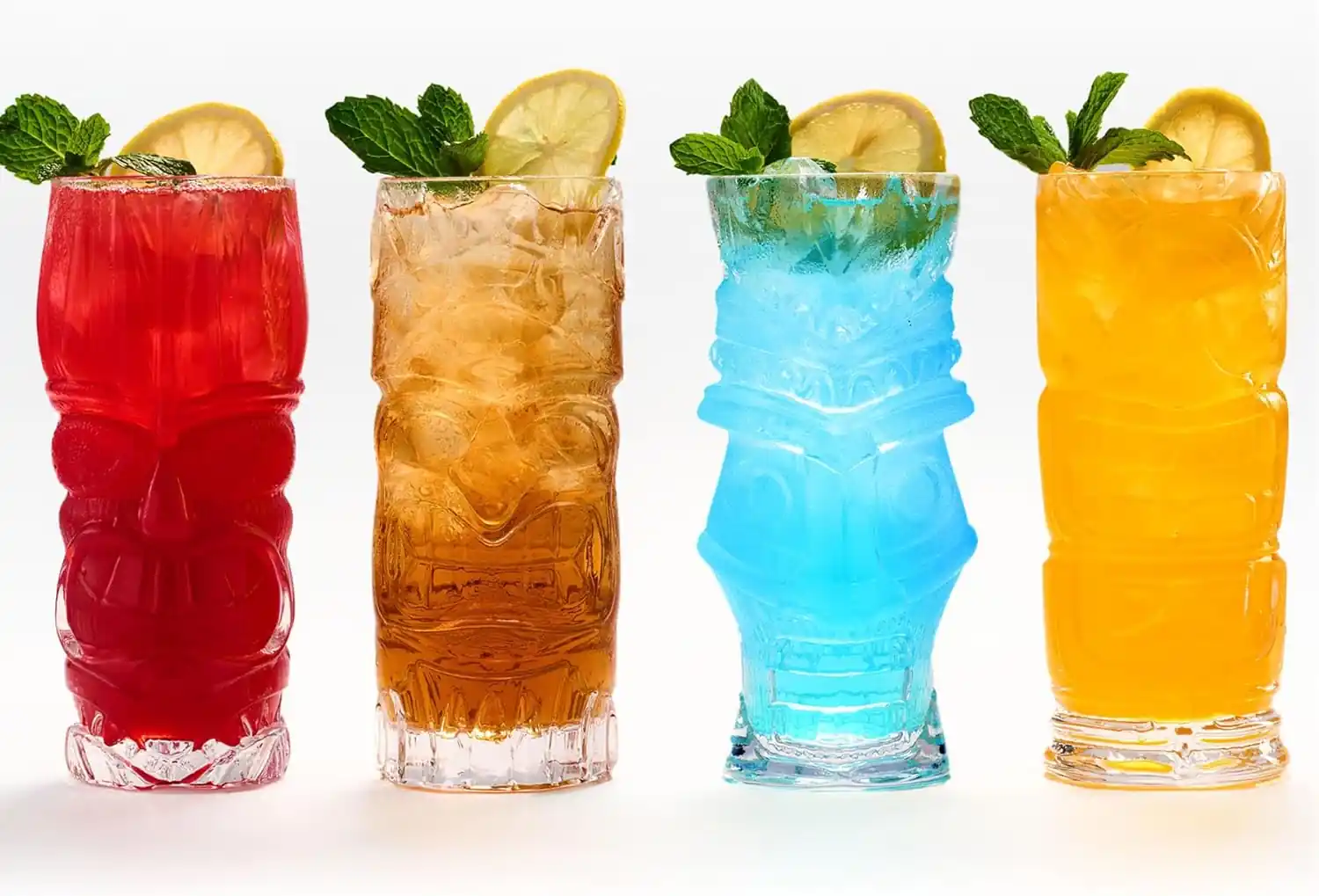 - Each glass boasts intricate and deeply embossed Tiki detailing, capturing the essence of Polynesian artistry and making every sip a celebration.